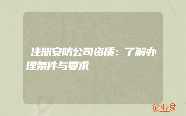 - 注册安防公司资质详解:了解办理条件与要求一、安防公司资质的重要性随着安防行业的快速发展,越来越多的企业加入到这一行业中来。对于企业来说,拥有相应的资质证书是参与市场竞争、开展业务的必要条件。安防公司资