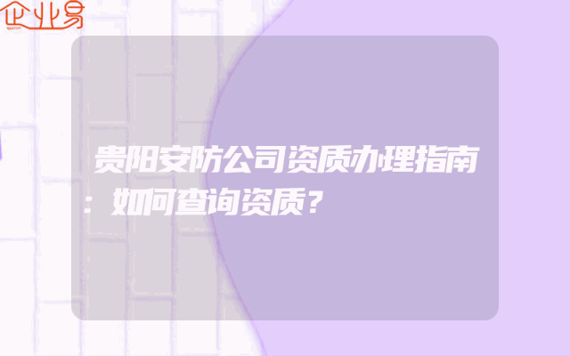 - 贵阳安防公司资质办理指南:如何查询资质?