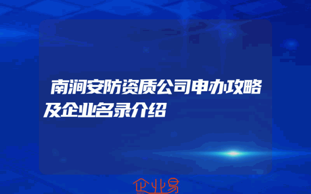 - 南涧安防资质公司申办攻略及企业名录介绍