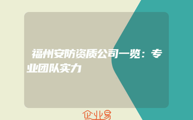 - 福州安防资质公司一览:专业团队实力解析一、福州安防公司概述福州作为福建省的省会城市,拥有众多安防资质公司。这些公司依托其专业团队和丰富的经验,为城市的安全保驾护航。涉及的业务领域广泛,包括视频监控、智能门禁、报警系统等多个方面。二、团队实力