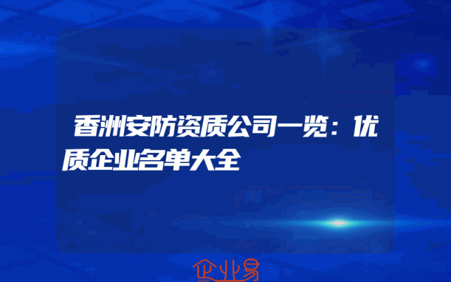 - 香洲安防资质公司一览:优质企业名单大全一、香洲安防资质公司概览在香洲区,众多安防资质公司汇聚一堂,它们凭借专业的服务和优质的产品赢得了广大客户的信赖。这些公司不仅在安全防范领域拥有丰富的经验,同时也具备相