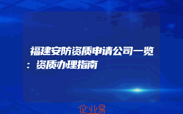 - 福建安防资质申请公司一览:资质办理指南一、福建安防资质概述随着安防行业的迅速发展,福建省内从事安防业务的公司日益增多。为了保障行业质量,规范市场秩序,安防资质的办理成为企业进入行业的必备条件。本文将详细介绍福建安防资质的申请流程及相关事项。