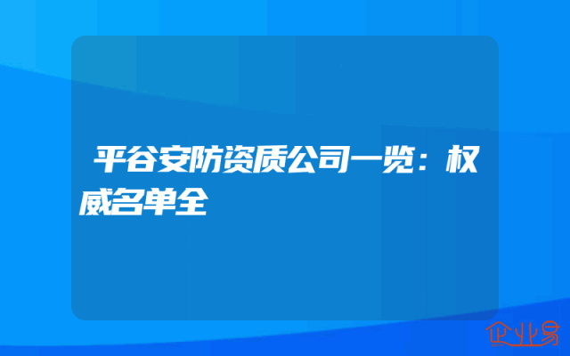 - 平谷安防资质公司一览:权威名单全
