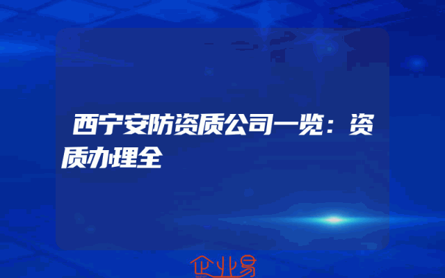 - 西宁安防资质公司一览:资质办理全