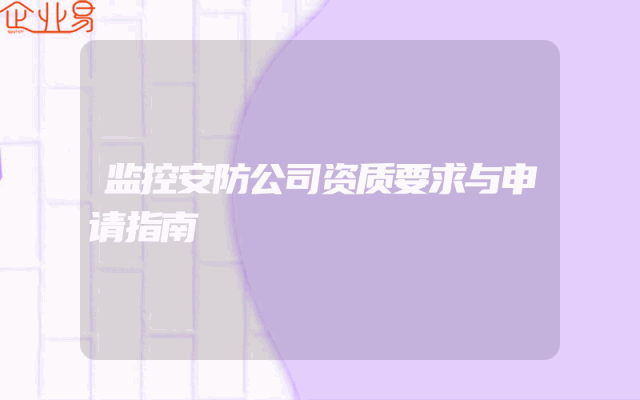 - 监控安防公司资质要求与申请指南