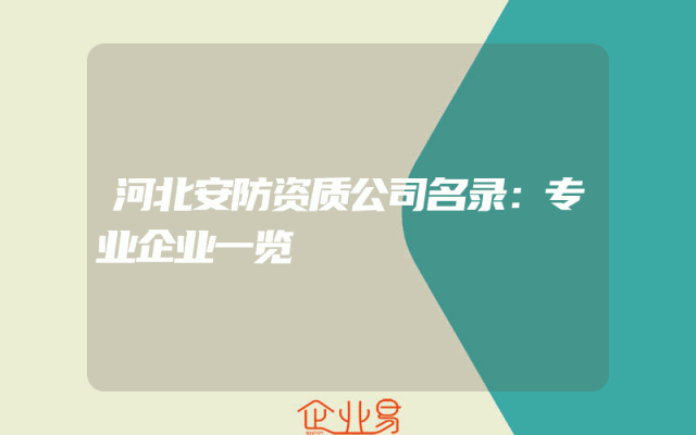 - 河北安防资质公司名录:专业企业一览