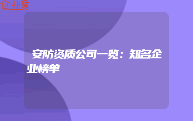 - 安防资质公司一览:知名企业榜单