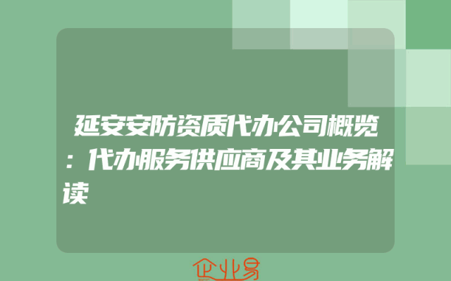 - 延安安防资质代办公司概览:代办服务供应商及其业务解读