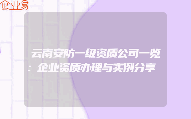 - 云南安防一级资质公司一览:企业资质办理与实例分享