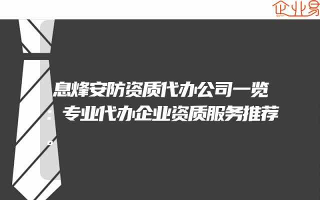 - 息烽安防资质代办公司一览:专业代办企业资质服务推荐。