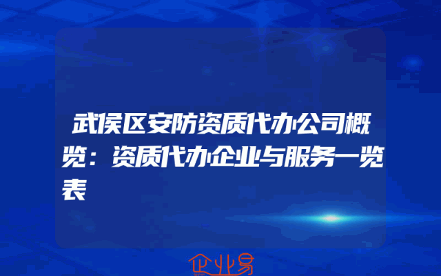 - 武侯区安防资质代办公司概览:资质代办企业与服务一览表