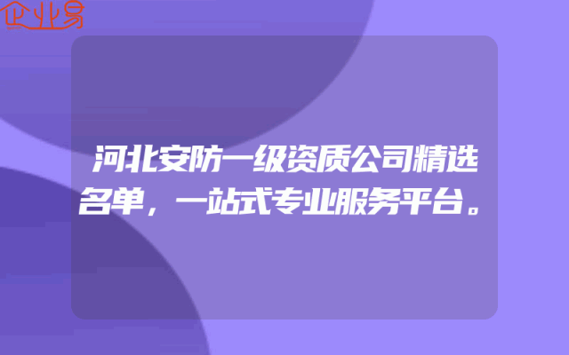 - 河北安防一级资质公司精选名单,一站式专业服务平台。