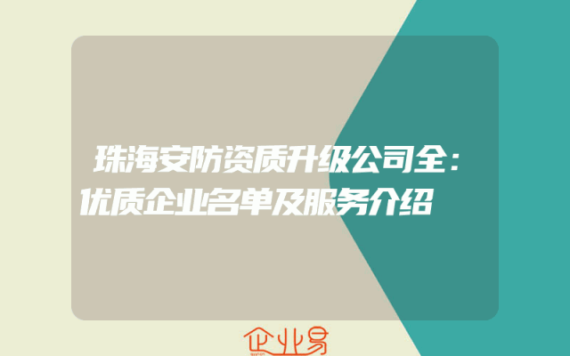 - 珠海安防资质升级公司全:优质企业名单及服务介绍