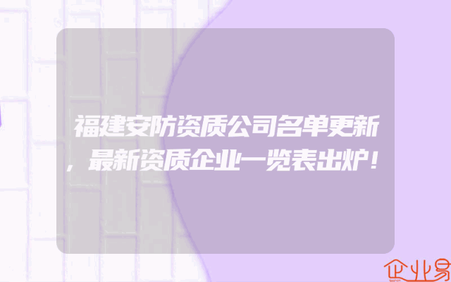 - 福建安防资质公司名单更新,最新资质企业一览表出炉!