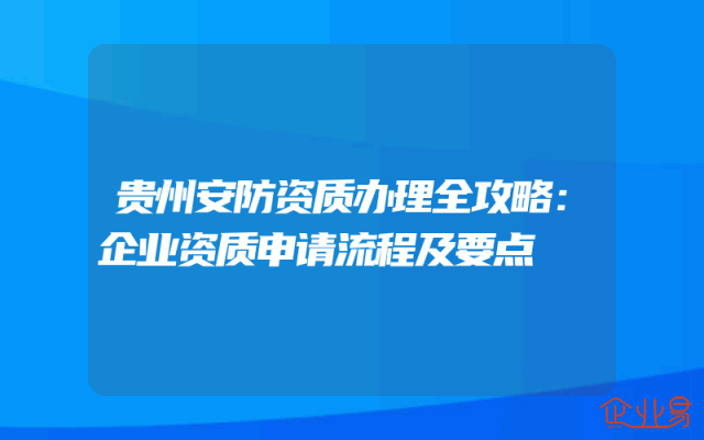 - 贵州安防资质办理全攻略:企业资质申请流程及要点