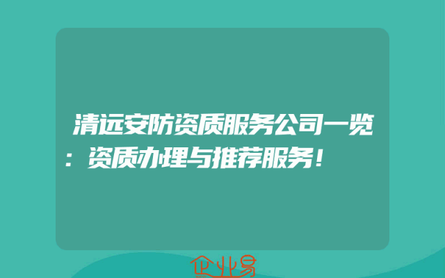 - 清远安防资质服务公司一览:资质办理与推荐服务!