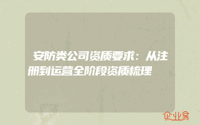 - 安防类公司资质要求:从注册到运营全阶段资质梳理