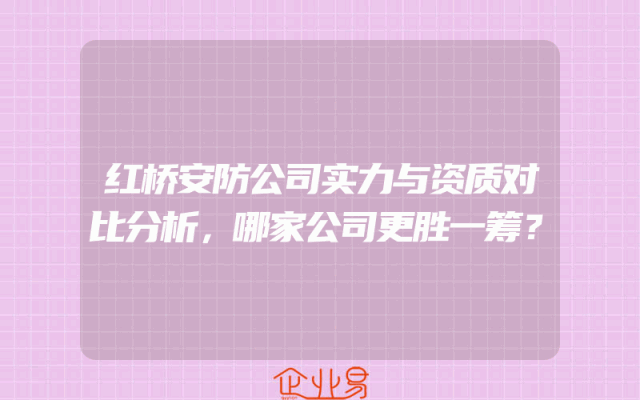 - 红桥安防公司实力与资质对比分析,哪家公司更胜一筹?