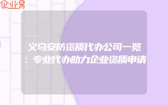 - 义乌安防资质代办公司一览:专业代办助力企业资质申请