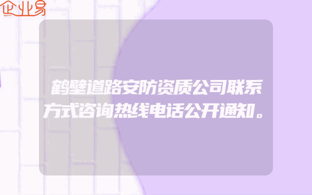 - 鹤壁道路安防资质公司联系方式咨询热线电话公开通知。