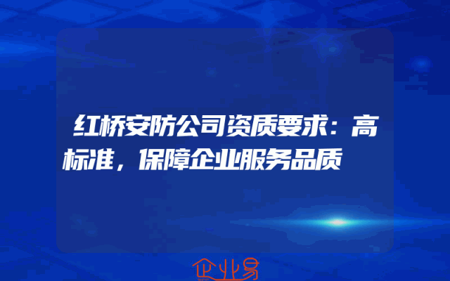 - 红桥安防公司资质要求:高标准,保障企业服务品质