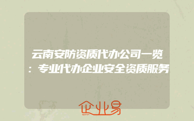 - 云南安防资质代办公司一览:专业代办企业安全资质服务