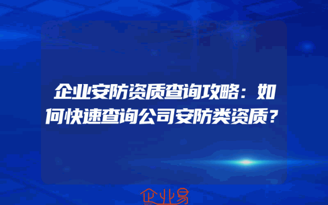 - 企业安防资质查询攻略:如何快速查询公司安防类资质?