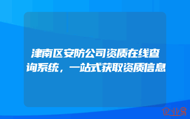 - 津南区安防公司资质在线查询系统,一站式获取资质信息
