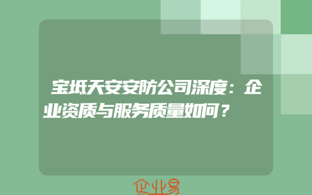 - 宝坻天安安防公司深度:企业资质与服务质量如何?