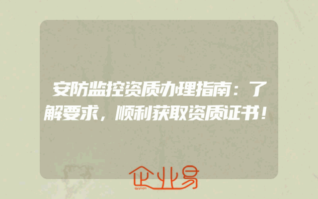 - 安防监控资质办理指南:了解要求,顺利获取资质证书!