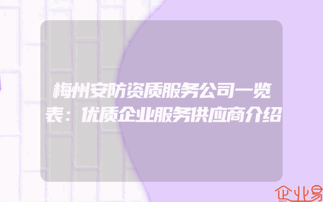 - 梅州安防资质服务公司一览表:优质企业服务供应商介绍