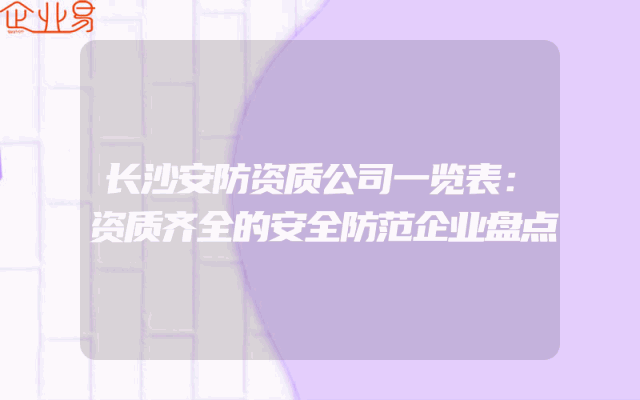 - 长沙安防资质公司一览表:资质齐全的安全防范企业盘点