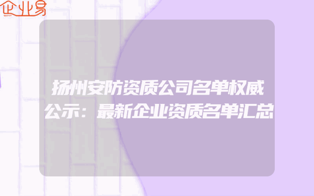 - 扬州安防资质公司名单权威公示:最新企业资质名单汇总