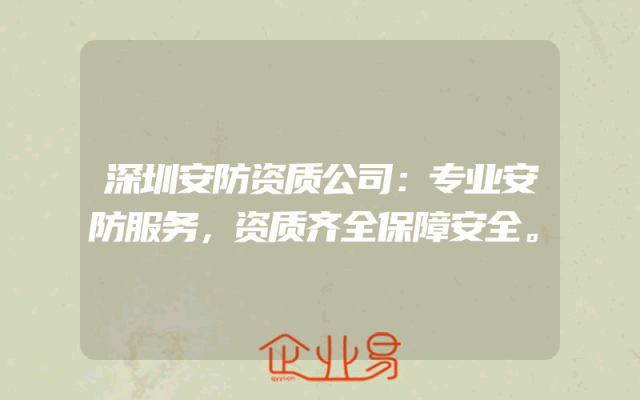 - 深圳安防资质公司:专业安防服务,资质齐全保障安全。