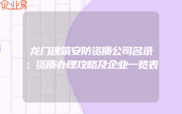 - 龙门建筑安防资质公司名录:资质办理攻略及企业一览表