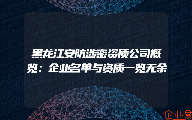 - 黑龙江安防涉密资质公司概览:企业名单与资质一览无余