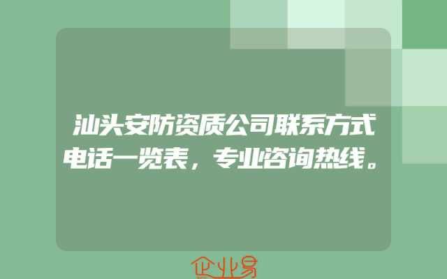 - 汕头安防资质公司联系方式电话一览表,专业咨询热线。