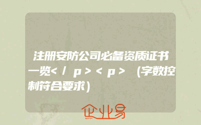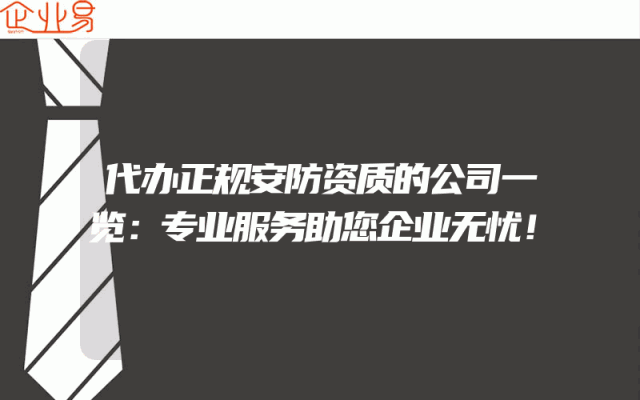 - 代办正规安防资质的公司一览:专业服务助您企业无忧!