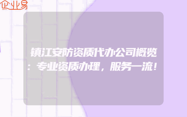 - 镇江安防资质代办公司概览:专业资质办理,服务一流!