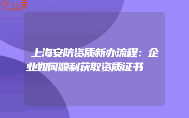 - 上海安防资质新办流程:企业如何顺利获取资质证书