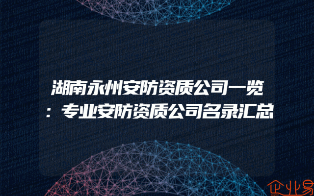 - 湖南永州安防资质公司一览:专业安防资质公司名录汇总
