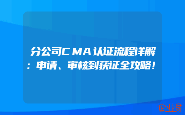 - 分公司CMA认证流程详解:申请、审核到获证全攻略在现代企业运营中,获取各类认证已经成为企业持续发展的必要条件之一。其中,CMA认证作为质量管理的权威认证之一,更是众多企业的追求目标。本文将从申请、审