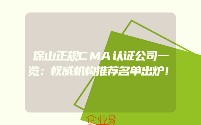 - 保山正规CMA认证公司一览:权威机构推荐名单出炉!