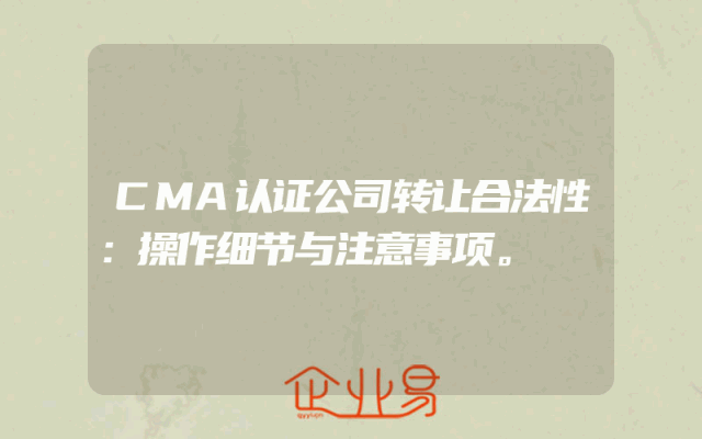 - CMA认证公司转让合法性:操作细节与注意事项。