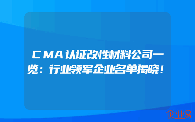 - CMA认证改性材料公司一览:行业领军企业名单揭晓!