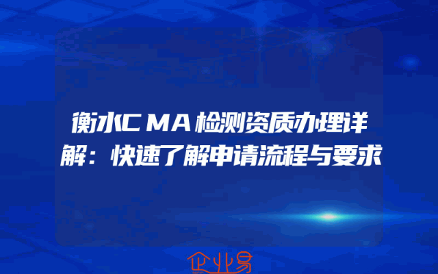 - 衡水CMA检测资质办理详解:快速了解申请流程与要求