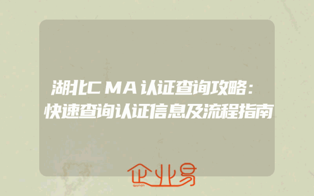 - 湖北CMA认证查询攻略:快速查询认证信息及流程指南