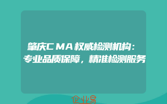 - 肇庆CMA权威检测机构:专业品质保障,精准检测服务
