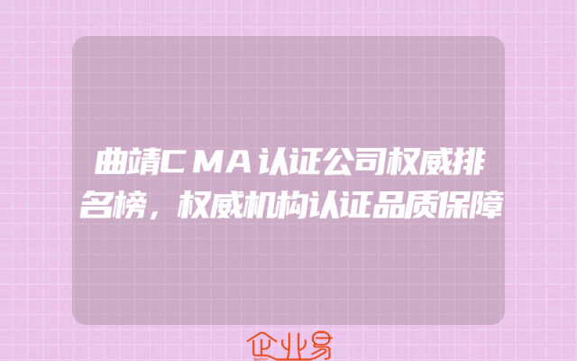 - 曲靖CMA认证公司权威排名榜,权威机构认证品质保障