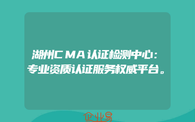 - 湖州CMA认证检测中心:专业资质认证服务权威平台。